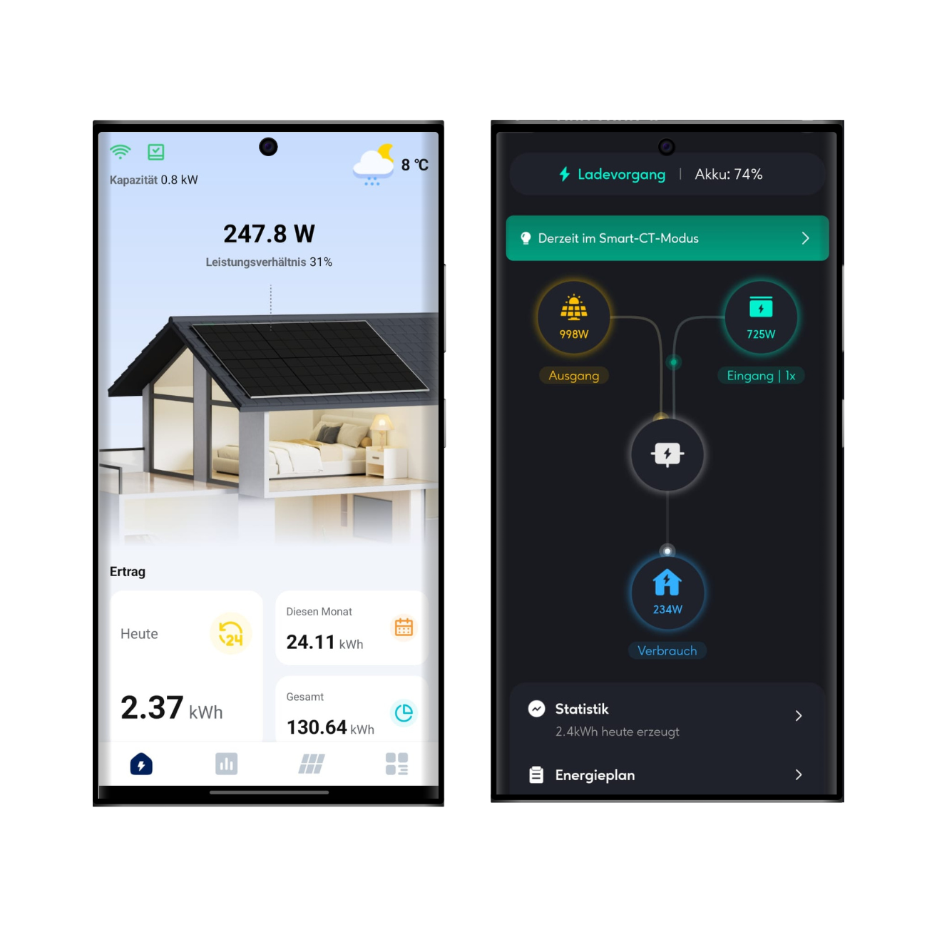 Alle unsere Balkonkraftwerke sind per App überwachbar oder steuerbar. So weißt du von überall aus was dein Balkonkraftwerk gerade produziert.