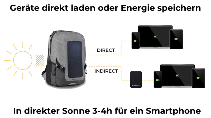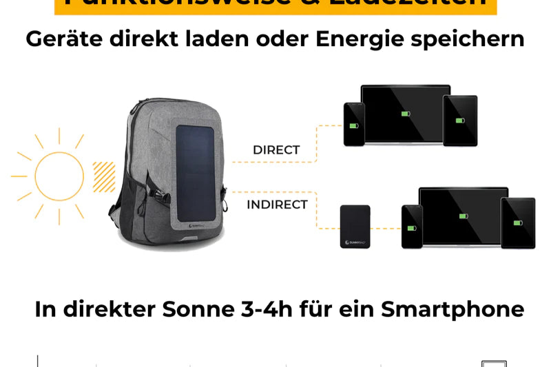 - Rucksack und Solarpaneel können separat verwendet werden.